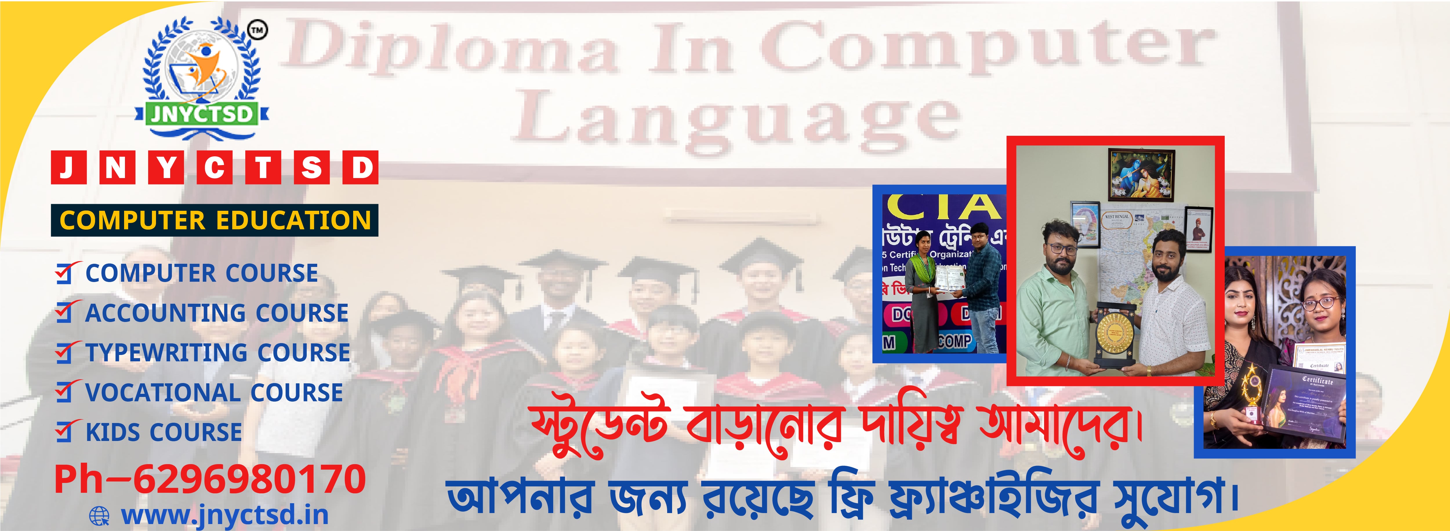 • From my personal experience, I am impressed with jnyctsd's facilities and excellent service. My Instituite is now No. 1 computer Training institute in Nadanghat area, all credit to the entire team of JNYCTSD.